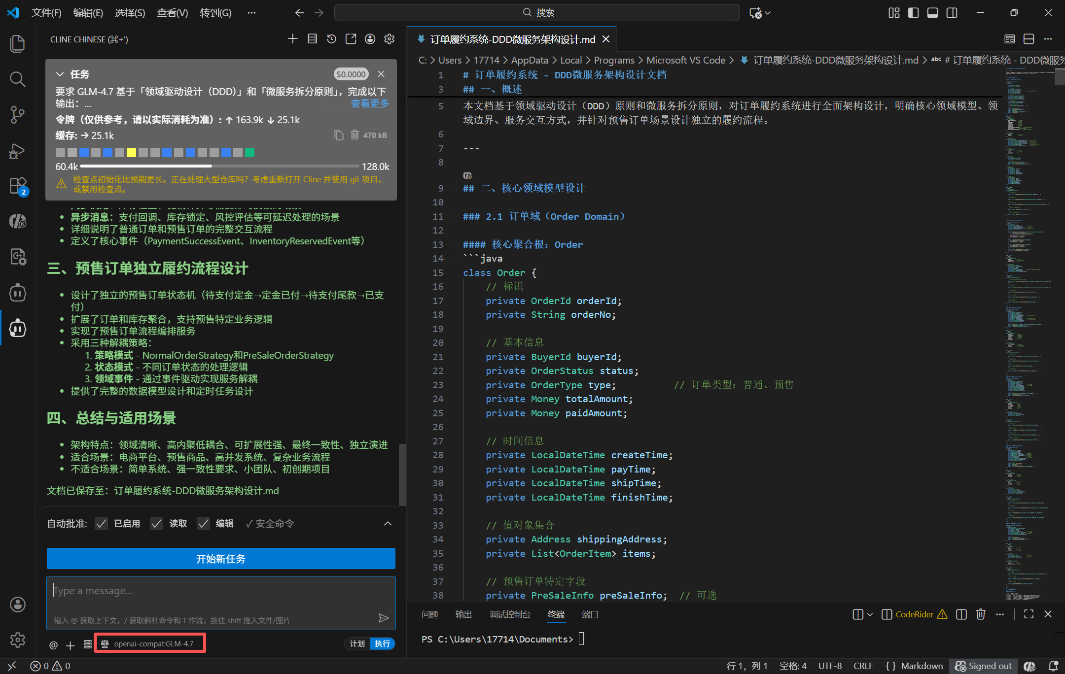 要求 GLM-4.7 基于「领域驱动设计(DDD)」和「微服务拆分原则」,完成以下输出: