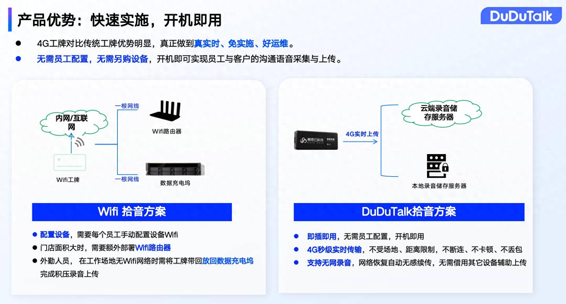 要一站式、系统性击穿上述三大卡点,传统工具组合已证明此路不通。dudutalk智能工牌提供的“端-云-AI”全栈解决方案,展现了其不可替代性。