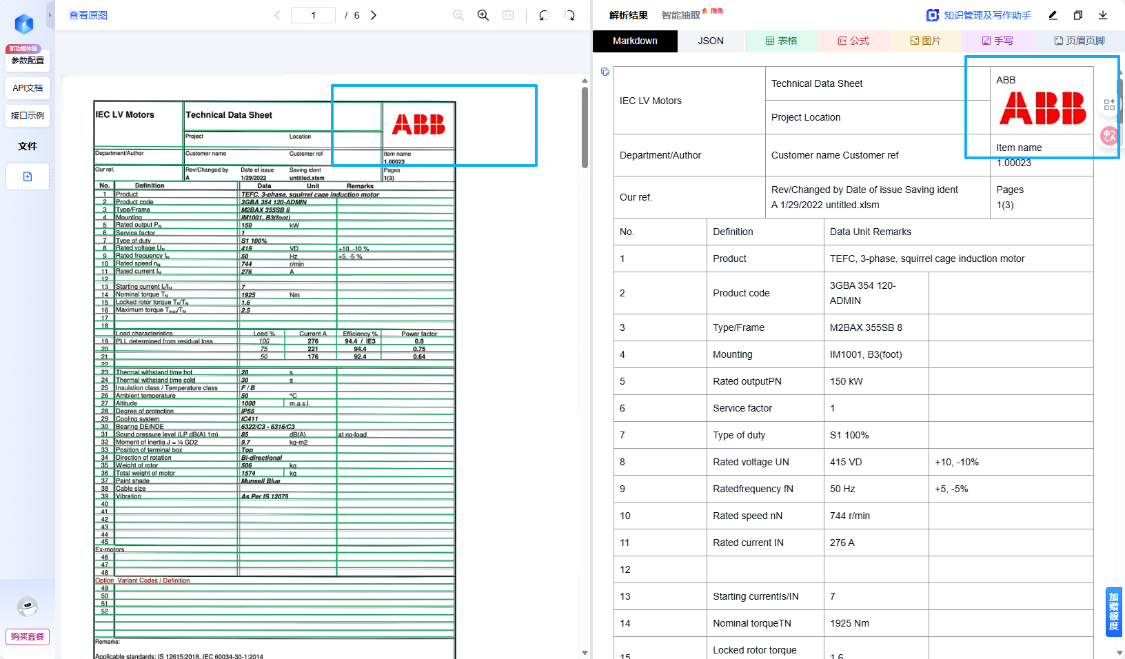 在针对 ABB 规格书的测试中,TextIn 展现了其核心能力: