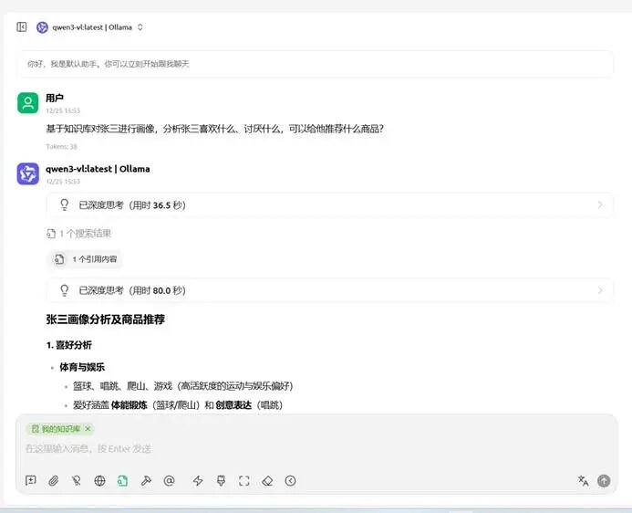 至此,本地的AI大模型和知识库构建完毕。兵器的锋利程度,就看电脑的配置、模型的参数大小和投喂的材料。