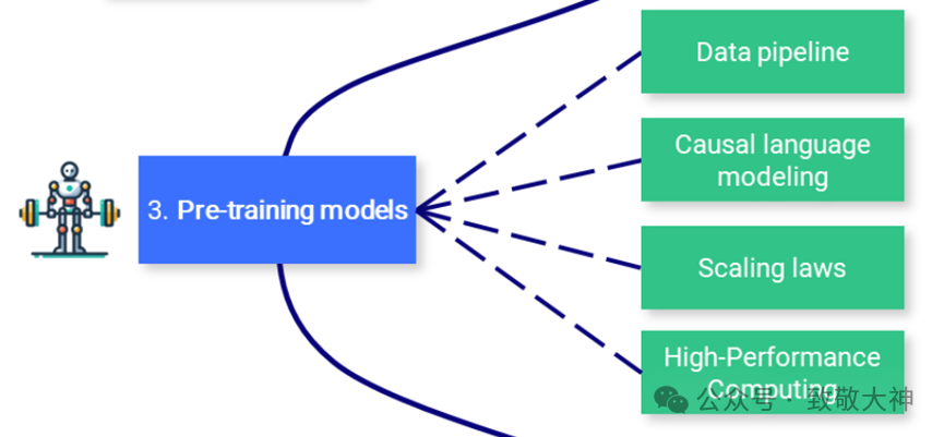 - 数据管道:预训练需要巨大的数据集(例如,Llama 2 在 2 万亿 tokens 上进行了训练),这些数据需要经过过滤、分词,并与预定义的词汇表进行整理。