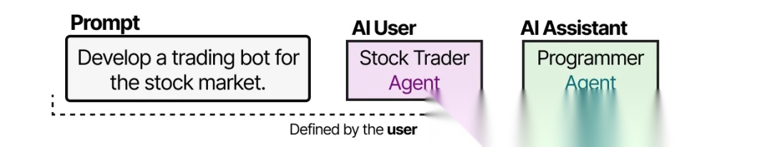 例如,在 CAMEL 中,用户首先提出问题,并定义 AI 用户(AI User)和 AI 助理(AI Assistant)的角色。AI 用户角色代表人类用户,并引导整个过程。