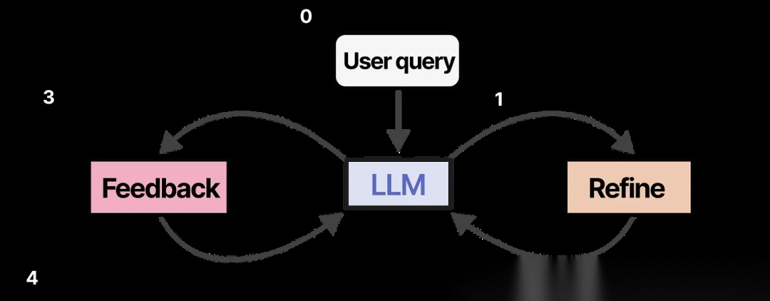 一种类似但更优雅的技术被称为SELF-REFINE,其中反复执行精炼输出和生成反馈的行动。