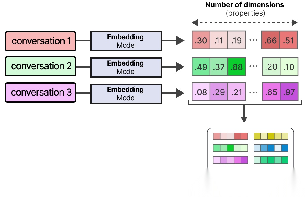 要构建这样的数据库,首先将对话嵌入到能够捕捉其含义的数值表示中。