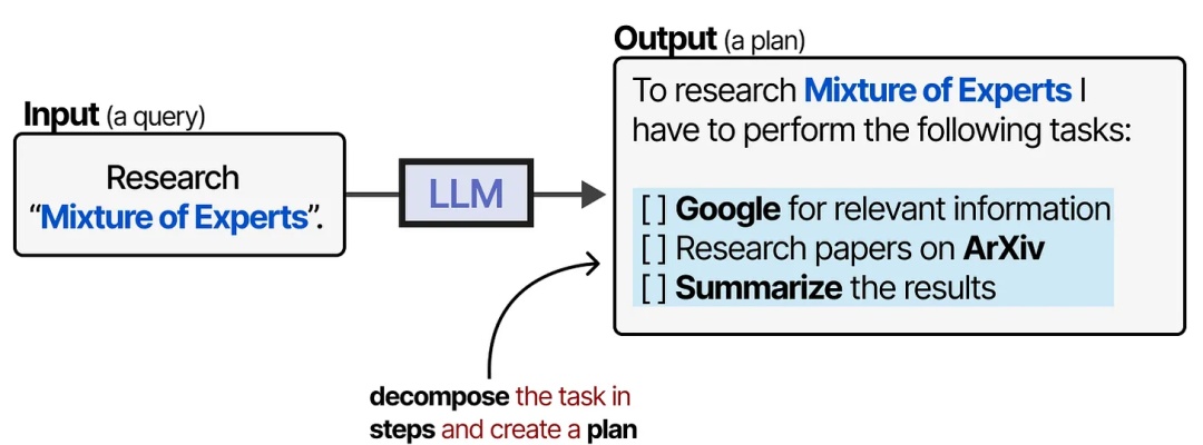 这就是规划(planning)发挥作用的地方。LLM Agents 中的规划涉及将给定任务分解为可执行的步骤。