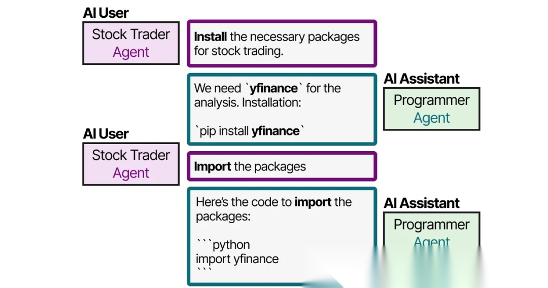 随后,AI 用户与 AI 助理相互协作,通过交互来解决问题。