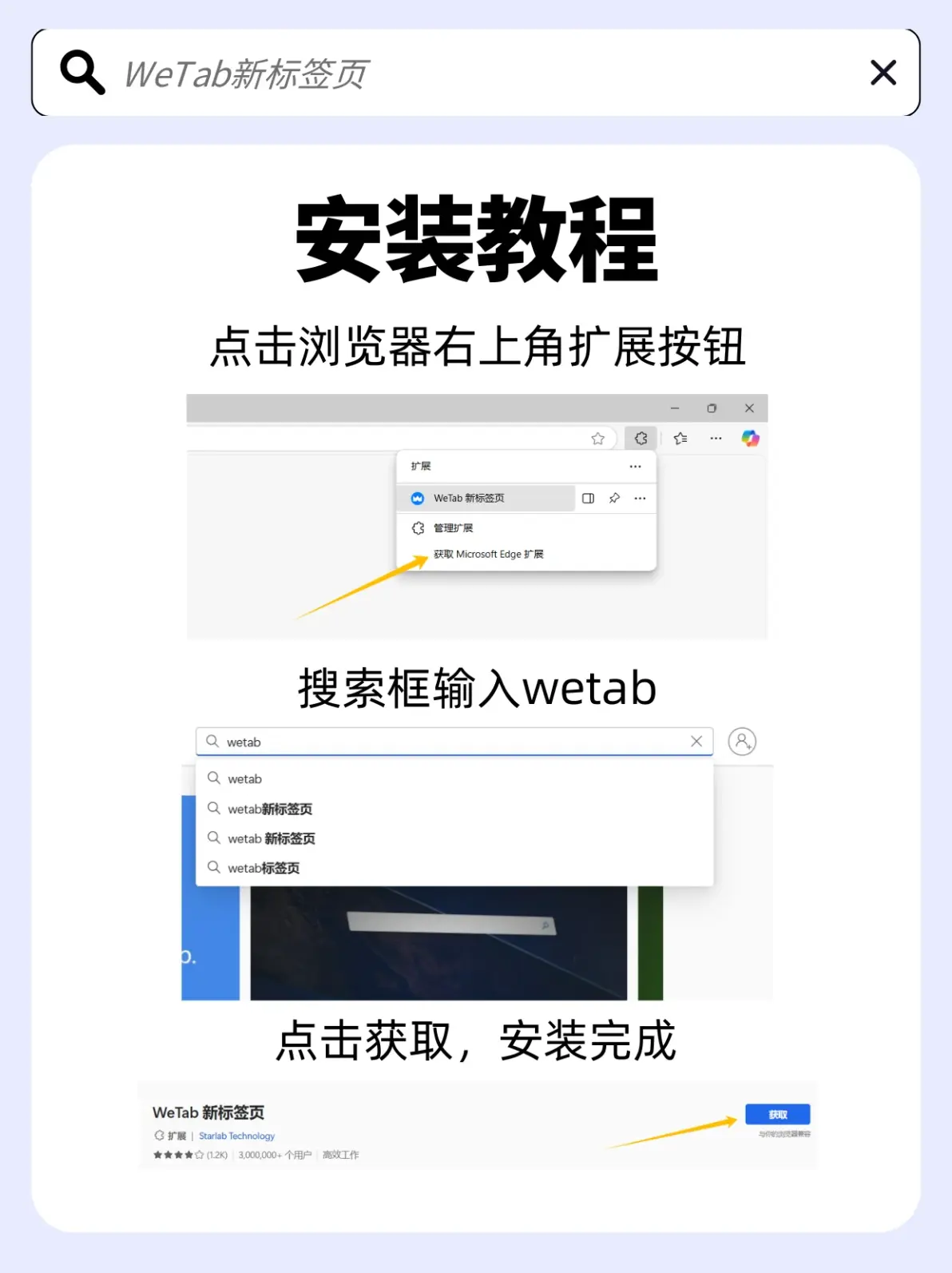 1.在浏览器扩展商店搜索“WeTab 新标签页”
