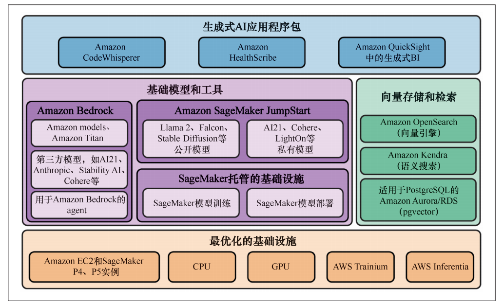 (AWS提供了构建端到端生成式AI应用程序所需的广泛服务)