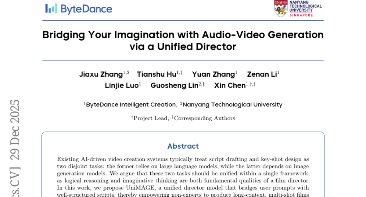 这项由字节跳动智能创作团队与南洋理工大学共同完成的研究发表于2025年12月,论文编号为arXiv:2512.23222v1。有兴趣深入了解的读者可以通过该编号查询完整论文。研究团队的核心成员包括张家旭、胡天枢、张源、李泽楠、罗林杰、林国胜和陈鑫,这个跨国团队在AI视频生成领域取得了重要突破。