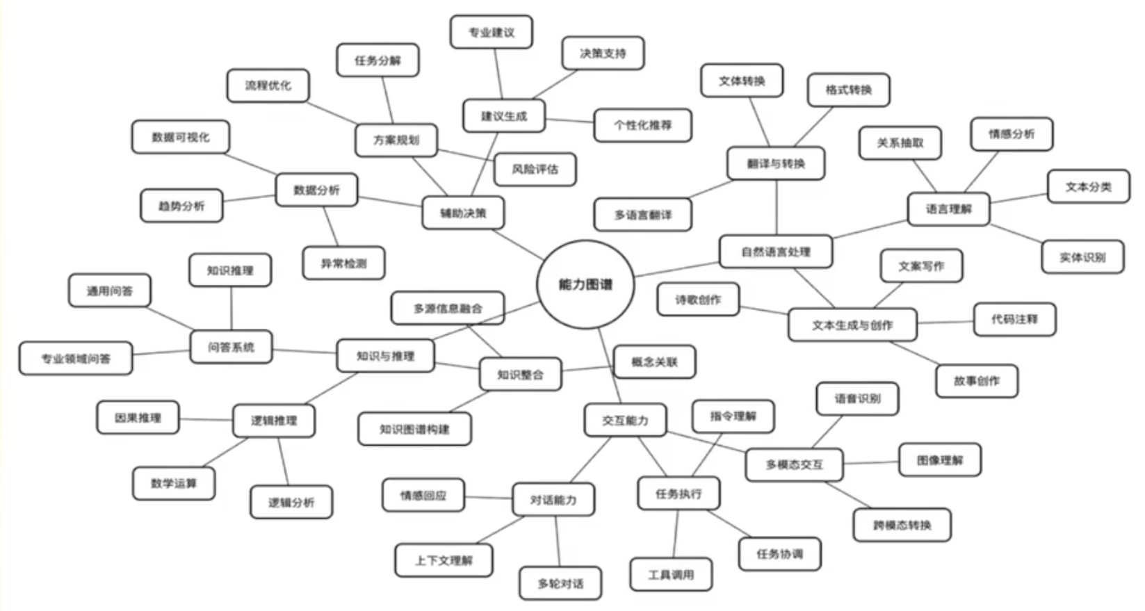 对于大模型,除了它的大模型的回答能力,还包括一些周边能力中间件,来辅助大模型来完成最终的任务。