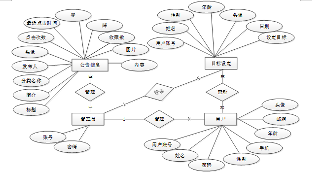 将“公告信息、目标设定、用户”等作为实体,它们的局部E-R图,如图4-2所示: