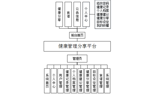 综合健康管理分享经历和对网上信息归纳整理的结果,在实际应用中,将用户分为两种:管理员和用户两个角色。其中用户可以操作的内容是有限的,管理员可以进行的操作最多。了解系统用户的分类以及可以进行的操作,对于接下来实现相关的功能具有重要的意义。