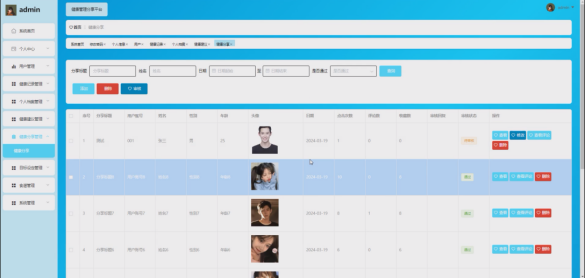 本章主要基于前面系统设计的内容,详细介绍了管理员和用户两个角色对健康管理分享平台的主要功能界面进行详细介绍和展示。