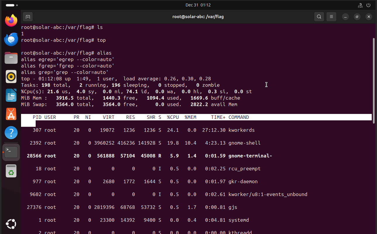 题目背景:你是一名初级安全工程师,运维团队报告,公司的一台核心开发服务器(Ubuntu 22.04 LTS)出现CPU使用率异常飙高告警及安全设备检出外联挖矿事件。现在,你需要登录该服务器,排查并处置这一安全事件,并最终找出问题的根源。账号:root,密码:P@ssw0rd