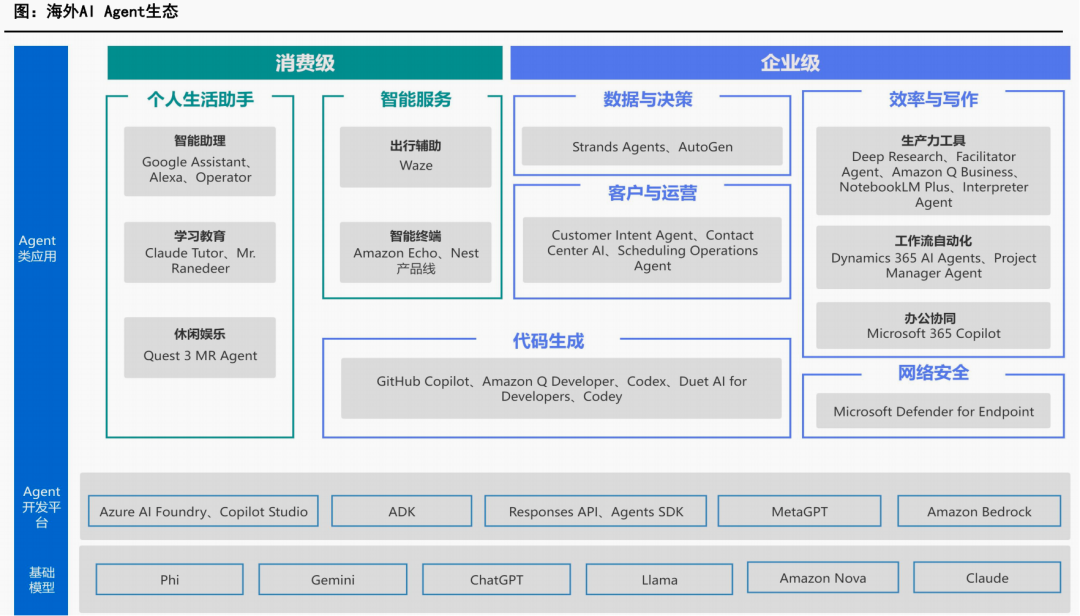 海外AI Agent生态:微软、谷歌、OpenAI、META、亚马逊、Anthropic