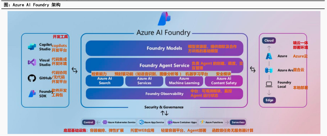 Azure AI Foundry:构建企业级 AI 模型与智能体全生命周期管理体系。已被80%的财富500强企业使用,25Q2处理的tokens超500万亿,同比增长超7倍,agent service客户数达1.4万。集成Grok-3等1900+模型。