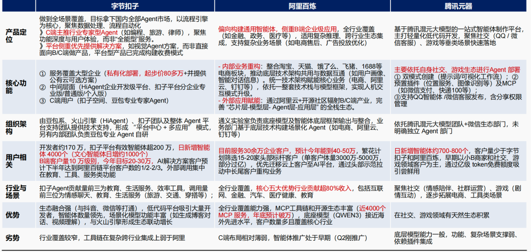 国内Agent平台布局:字节、阿里、腾讯对比