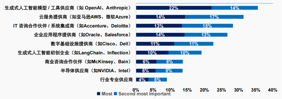 图:最能助力机构实现 AI目标的供应商