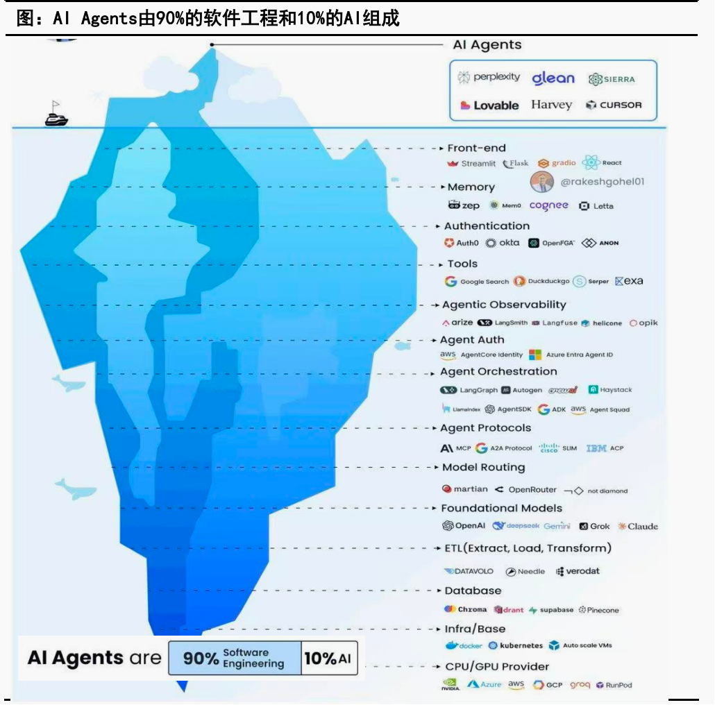冰山上端如Perplexity、Cursor等知名的AI Agent产品是用户能直接接触到的表象。