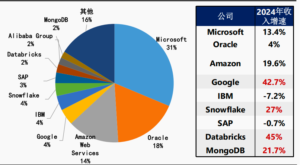 图:2024年数据库厂商份额与增速