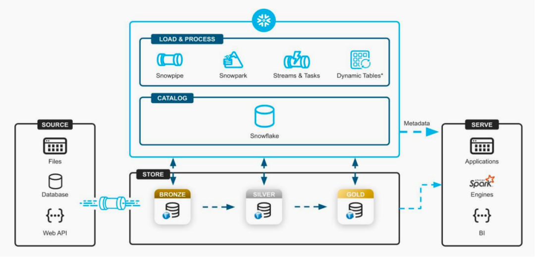 ① Iceberg Tables(2024年6月10日宣布正式商用): Snowflake Iceberg表提供了直接与数据湖中的Iceberg和Parquet数据交互的功能,即可助力模型部署、AI应用开发以通过 Snowflake 无缝安全地共享、协作、处理第三方存储的Iceberg数据。