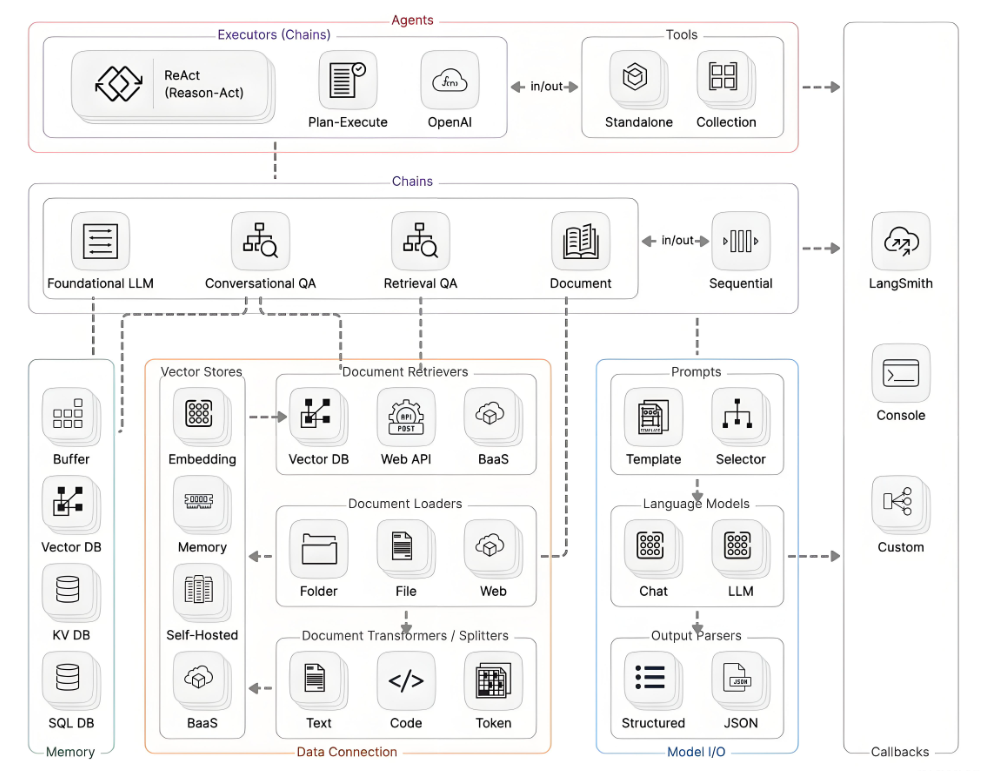 最流行的LLM开发框架,提供模块化组件,让你自由构建AI应用。