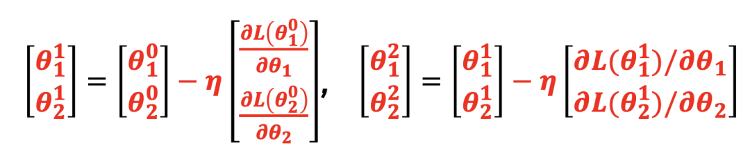 如图37所示,计算完一个输入的偏差函数,即开始更新参数,在等高线图中出现了很多较小的点,代表以较小的步骤朝梯度下降的方向进行多次尝试;右边则是在计算所有的输入与预期的损失函数后进行一次梯度下降,步长较大,但实际上离全局最低点距离较远。