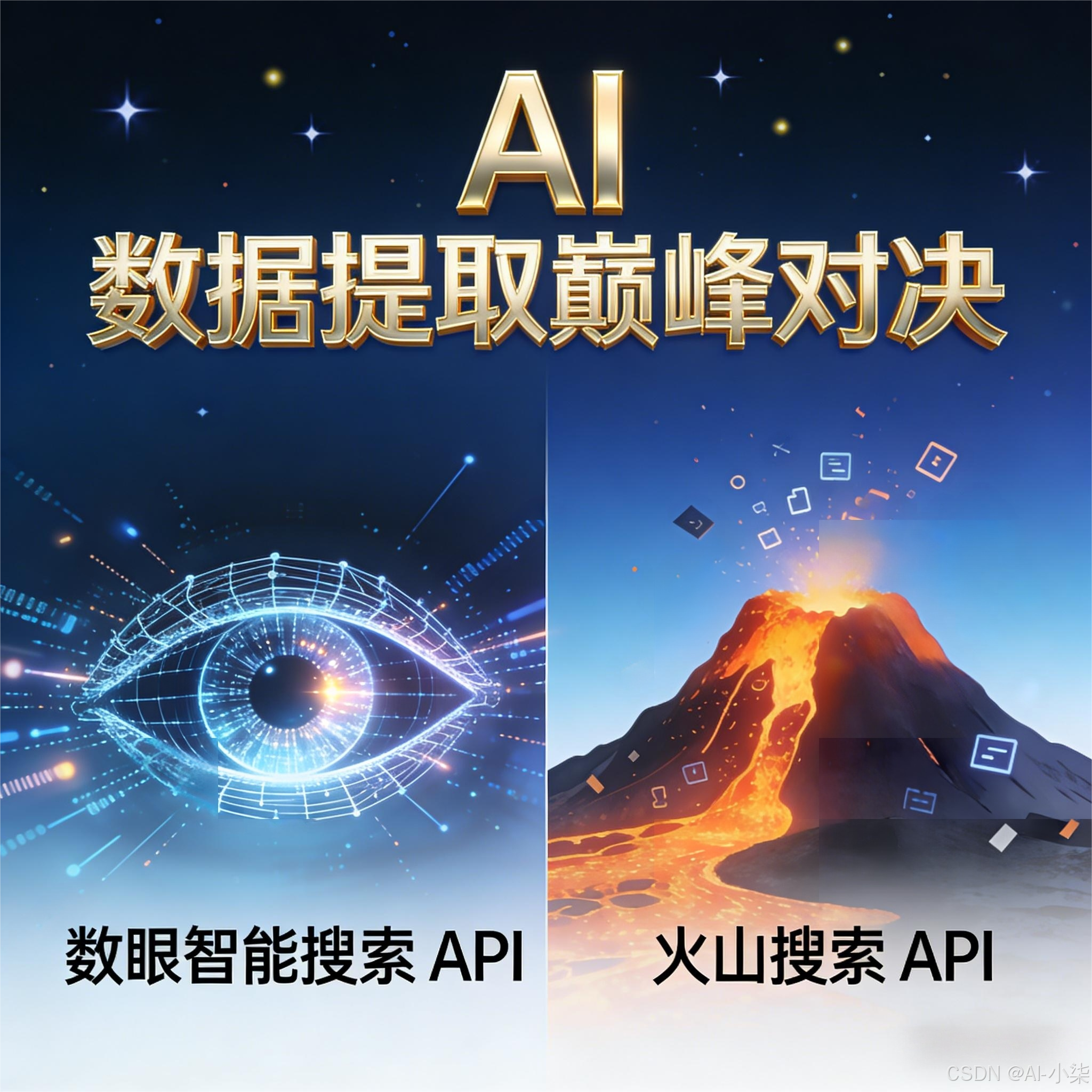在 AI 技术飞速迭代的当下,数据提取作为 AI 应用的 “燃料供给” 环节,直接决定了产品的核心竞争力。数眼智能搜索 API 与火山搜索 API,作为行业内极具代表性的两大工具,分别以独特的技术路径和核心优势,成为不同业务场景下的优选方案。本文将从技术特性、核心优势、场景适配三大维度,展开一场公平对决,带您看清二者的硬核实力。