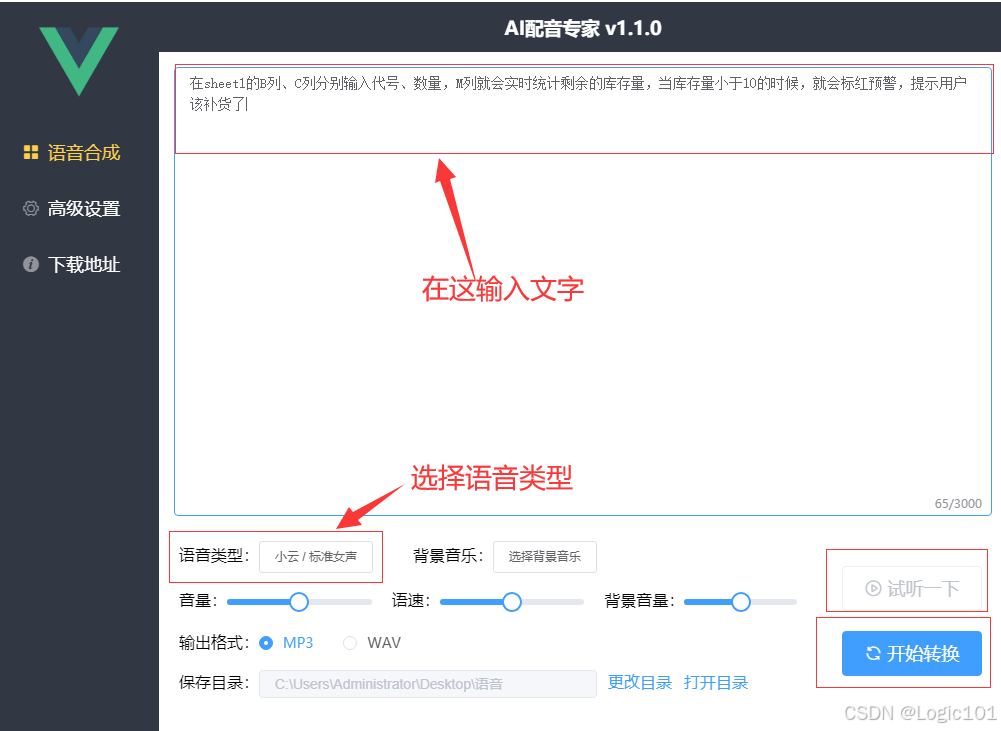 语音类型:根据内容选择(技术教程推荐使用“专业女声”或“清晰男声”)
