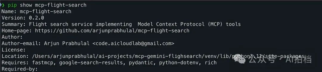 你可以通过以下链接在 PyPI 上安装该 MCP 服务器包:👉 https://pypi.org/project/mcp-flight-search/