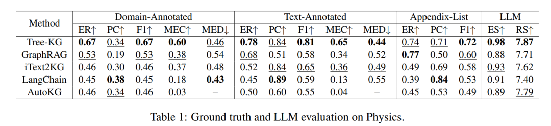 表1 物理领域 Ground-truth 评价(F1 ↑)