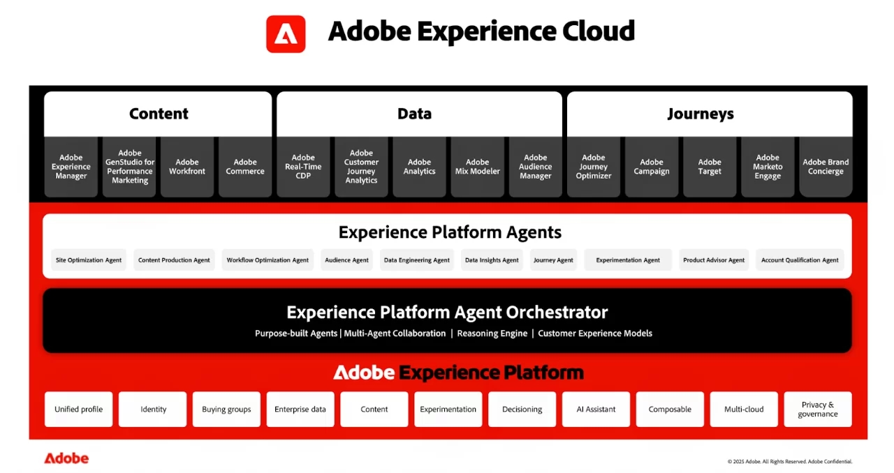 随着客户期望不断提升,企业需要具备预测意图、规模化个性化以及即时提供相关体验的能力。而这正是 Adobe Experience Cloud 的 AI 功能——由 Adobe Sensei GenAI 驱动——的强项所在。Adobe 对 AI 的持续