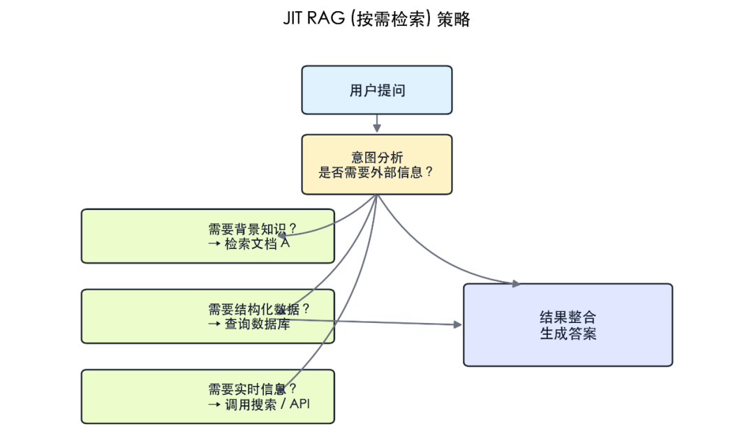 RAG 优化方面,JIT Retrieval(即时检索)的理念是只在需要时加载数据,而非一开始就塞满上下文窗口,这能显著提升效率和相关性。