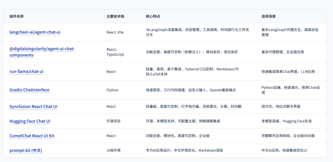 assistant-ui 是 AI 对话界面的 React 组件库,支持消息流式处理和状态管理,适合快速构建 AI 对话产品的前端。以下是笔者整理的其他组件。