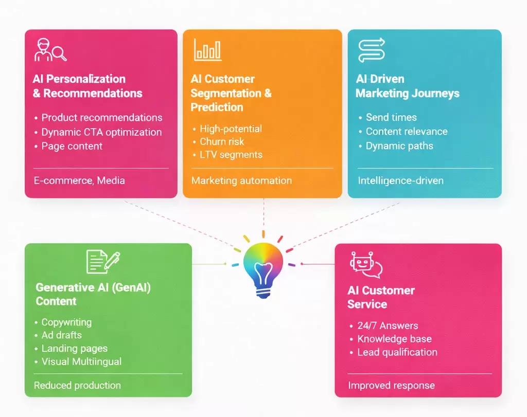 以下是企业最常见、也最容易落地的 AI MarTech 应用: