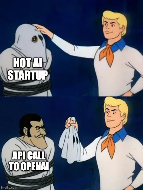 AI 套壳应用梗图:底层不过是对 OpenAI 的一次 API 调用。