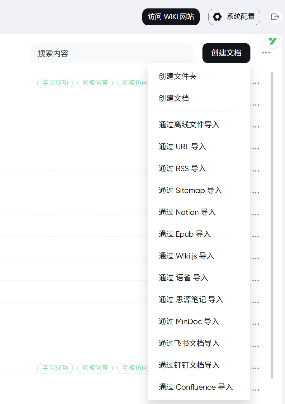 - 灵活内容导入方式:支持多渠道内容导入,包括通过网页 URL 导入、网站 Sitemap 导入、RSS 订阅导入、离线文件导入等,快速整合分散知识资源。