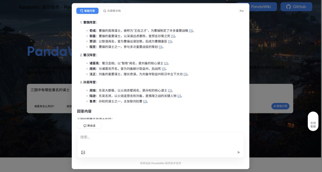 PandaWiki 是一款由 AI 大模型驱动的开源知识库搭建系统,凭借强大的功能和极低的上手门槛,帮助你快速构建智能化的 产品文档、技术文档、FAQ、博客系统,借助大模型的力量为你提供 AI 创作、AI 问答、AI 搜索 等能力。上线后累计装机量突破 3w+,成为开发者和企业争相追捧的热门项目。