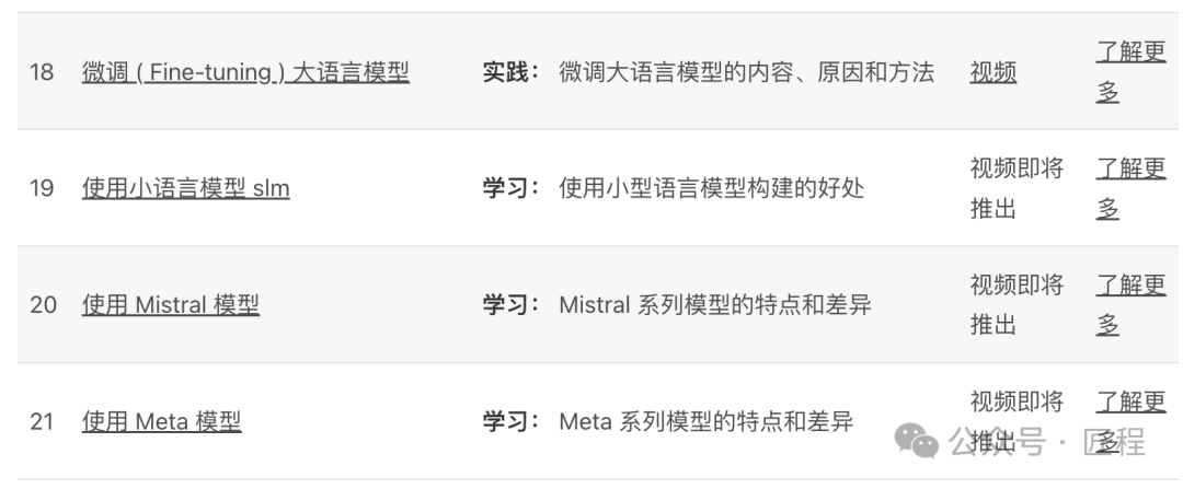 对想深入AI领域的朋友来说,第18课讲解如何"微调"大语言模型,让模型更适合特定需求;第17课介绍AI代理框架,教你如何构建能自主完成任务的AI助手。