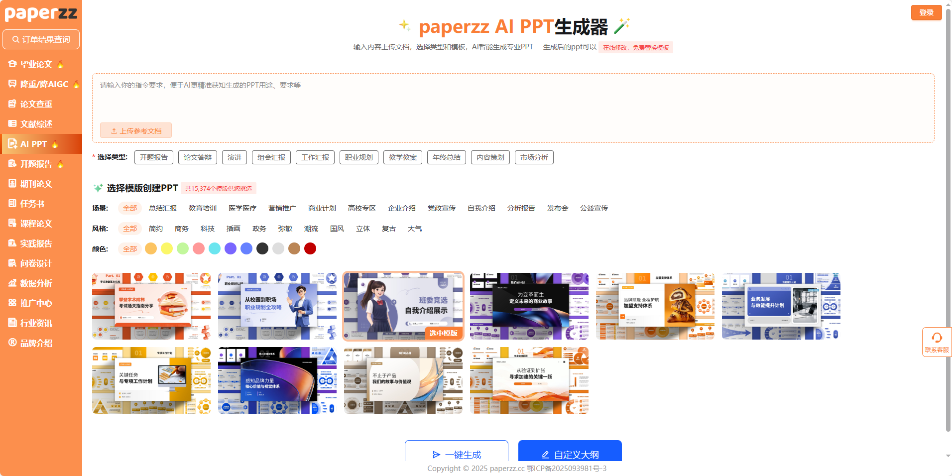 15374 种 “场景模板” 一键归位:paperzzAIPPT,把 PPT 从 “体力活” 变成 “选择题”