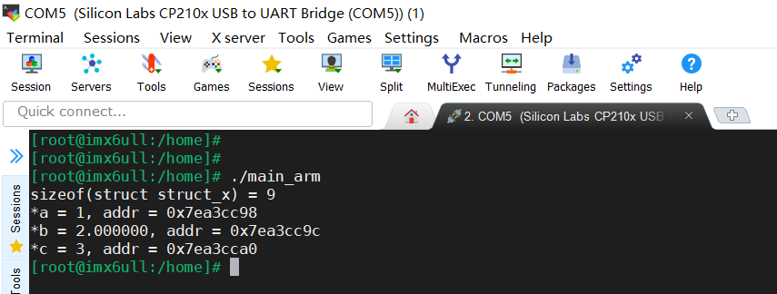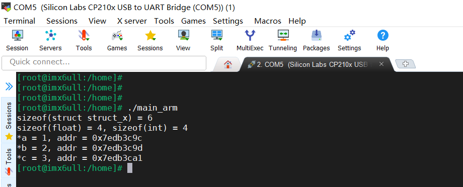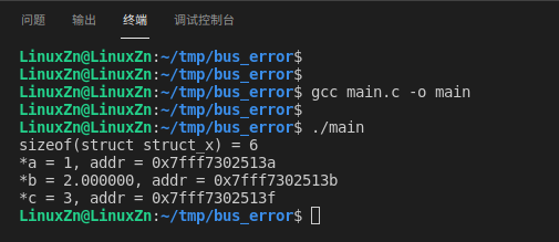 紧凑布局下,b 的地址变成了 0x01(不是 4 的倍数)。