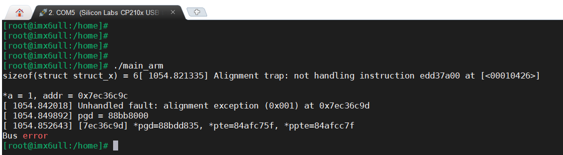 我们暂且认为问题就在于 float b 的起始地址是 0x01,不是 4 的倍数,触发了总线错误,因为确实可以通过手动填充来修复。