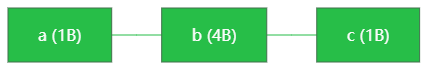 紧凑布局下的内存分布:假设a 在 0x00,那么b 在 0x01~0x04,c 在 0x05。