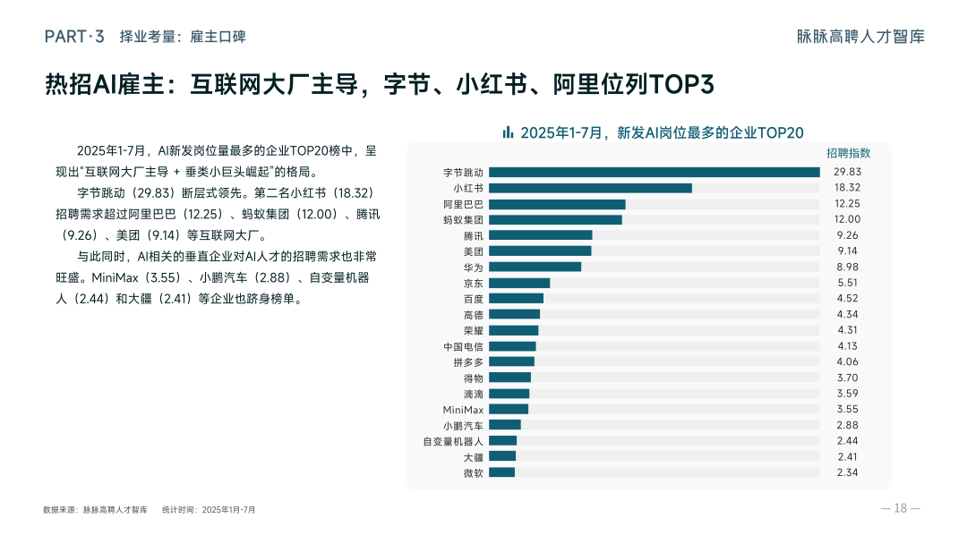 中小企成 “新势力”:中厂 AI 岗位增 13 倍,说明 AI 不再是大厂 “专属游戏”,中小企正在通过 “灵活机制 + 垂直场景” 吸引人才;