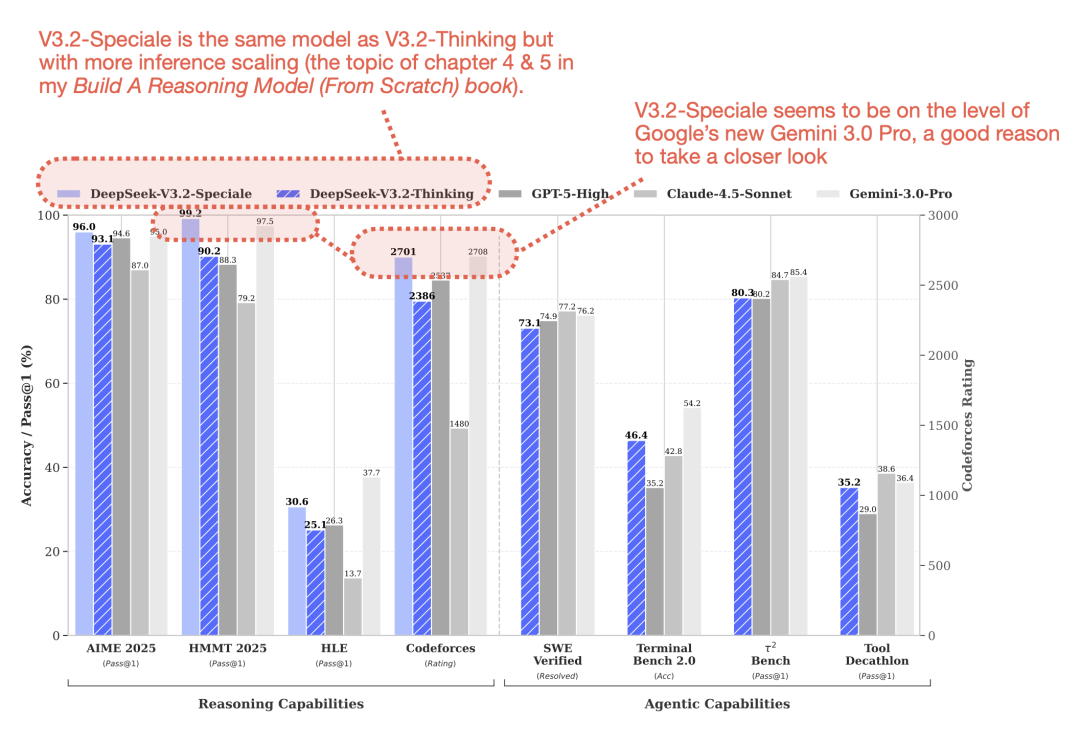 原本,我刚和家人度完感恩节假期回来,计划「只是」在原文章中增加一个新章节来简单介绍这次新发布的 DeepSeek V3.2。但随后我意识到,这次更新包含太多有趣的信息和细节,仅仅一个章节无法涵盖。因此,我决定将其写成一篇篇幅较长的独立文章。