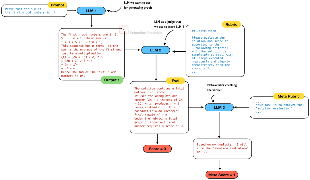 作为逻辑推论,人们会假设他们使用独立的证明生成器 (LLM 1) 和证明验证器 (LLM 2)。因此,这里使用的自我修正循环变得类似于下图所示。请注意,我们省略了 LLM 3,它仅在开发验证器 (LLM 2) 期间使用。