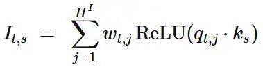 如果你对数学细节感兴趣,下面展示了(摘自论文的)该 lightning indexer 相似度分数的方程: