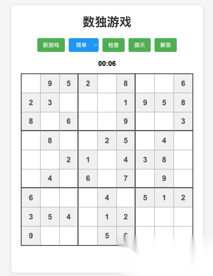 - 需求清晰、任务简单: 数独游戏的规则固定,AI 只需基于已有的训练数据⽣成代码,⽽不需要额外的上下⽂理解;