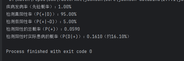 结论:即使检测结果为阳性,该人实际患病的概率也仅约为16.1%。这一结果看似反直觉,但却符合贝叶斯定理的逻辑——由于疾病的先验发病率极低(仅1%),即使检测准确率较高,假阳性案例仍会占据阳性结果的大部分。