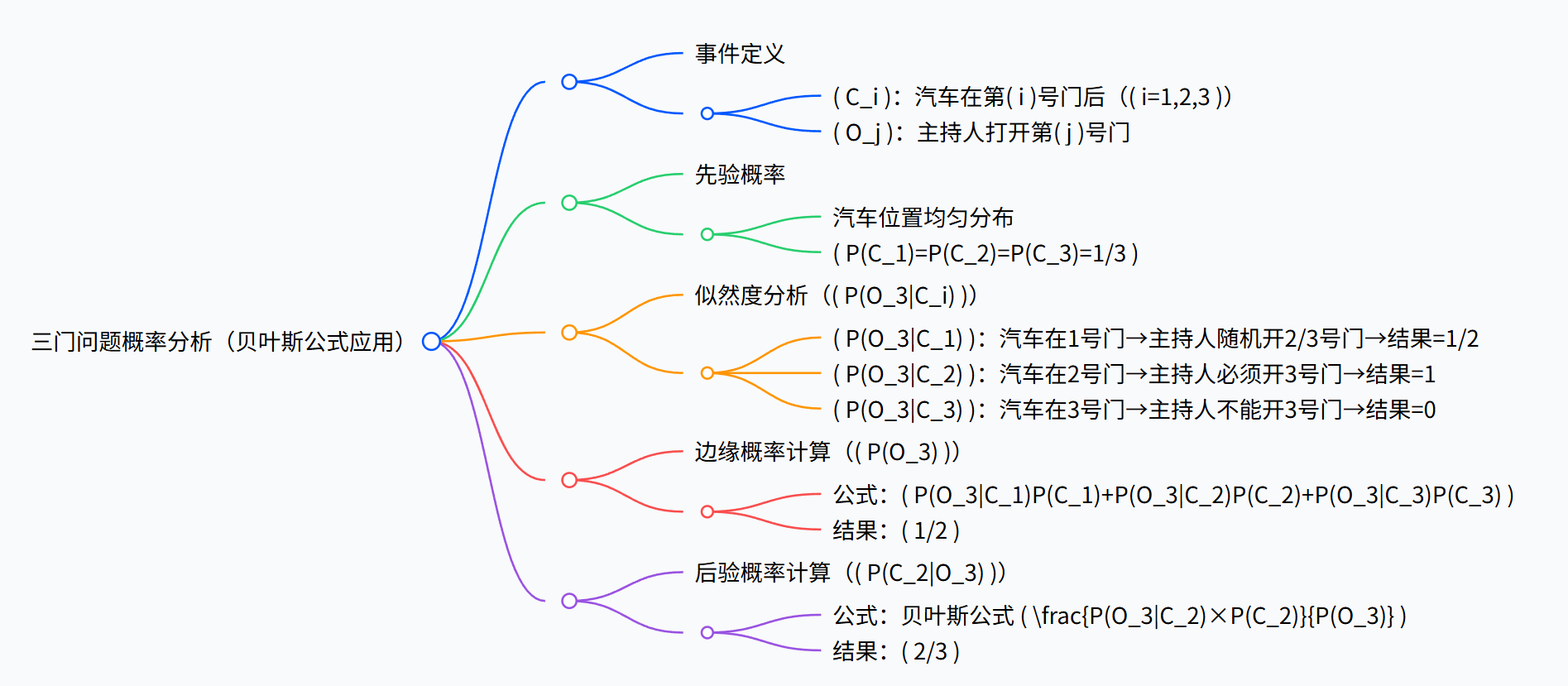 最终结论:换门后赢得汽车的概率为2/3。这一案例充分证明,贝叶斯定理是大模型解决复杂概率推理问题的核心理论支撑——大模型通过模拟人类的贝叶斯推理过程,能够精准处理具有不确定性的逻辑问题。